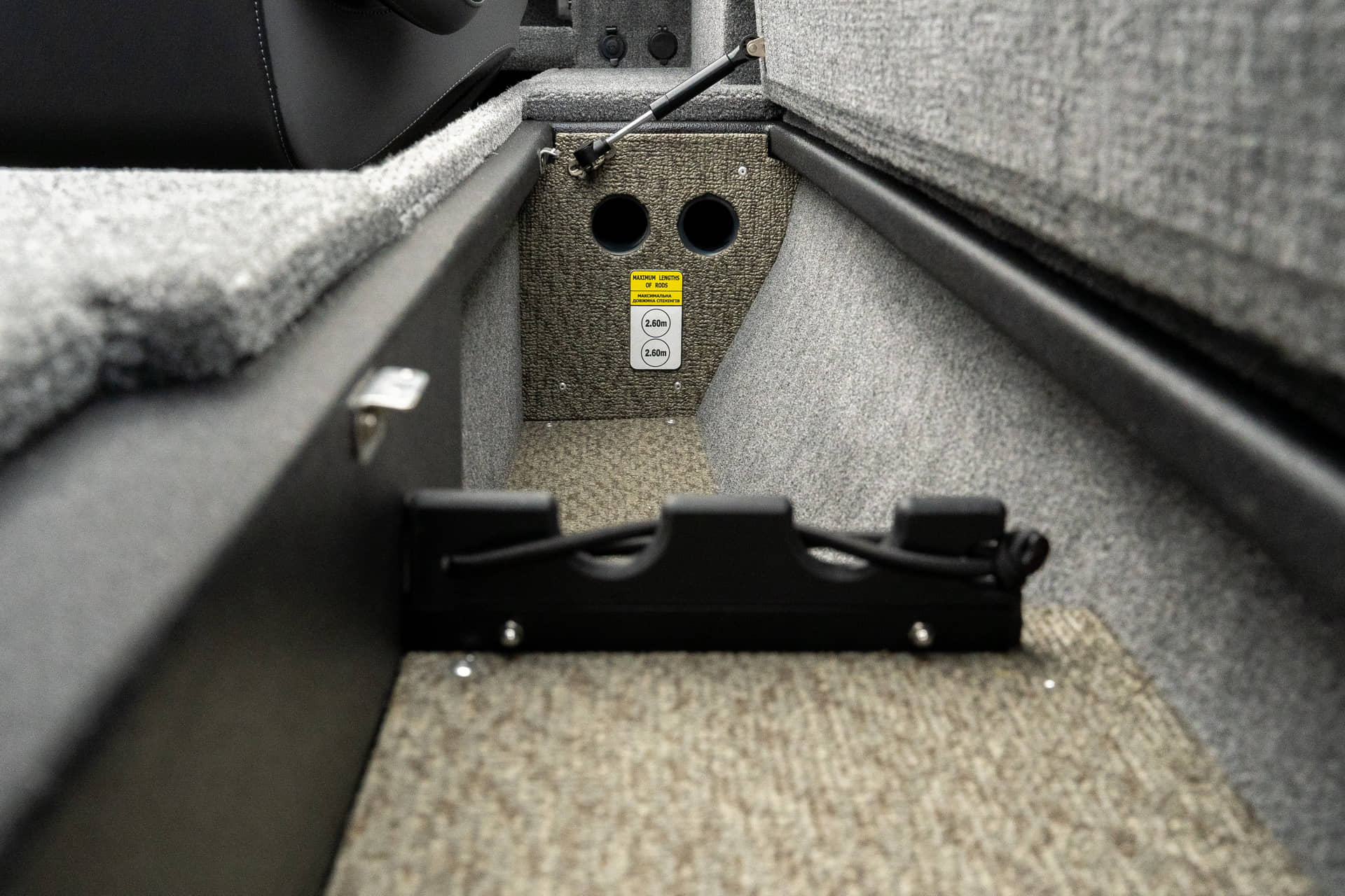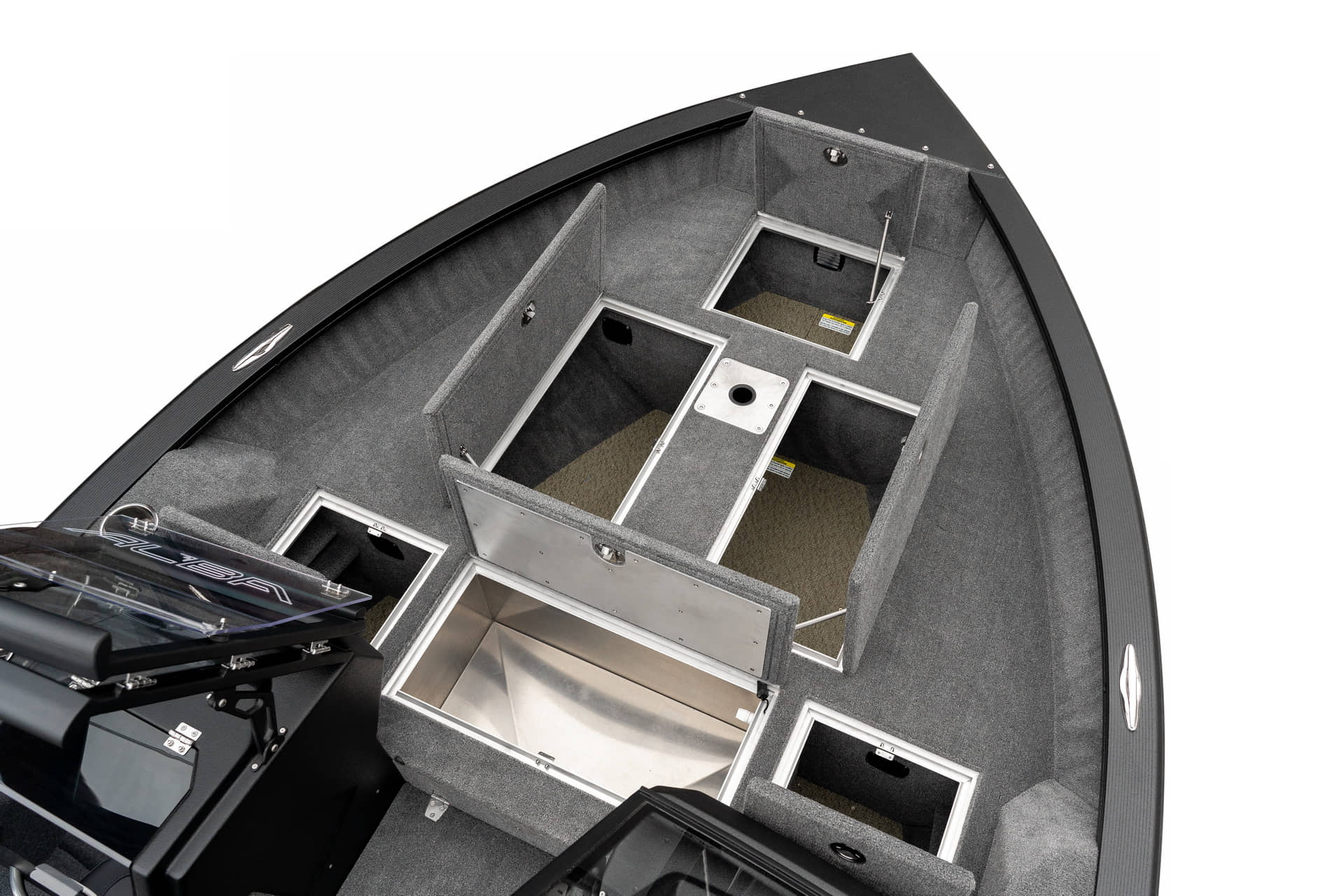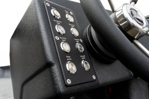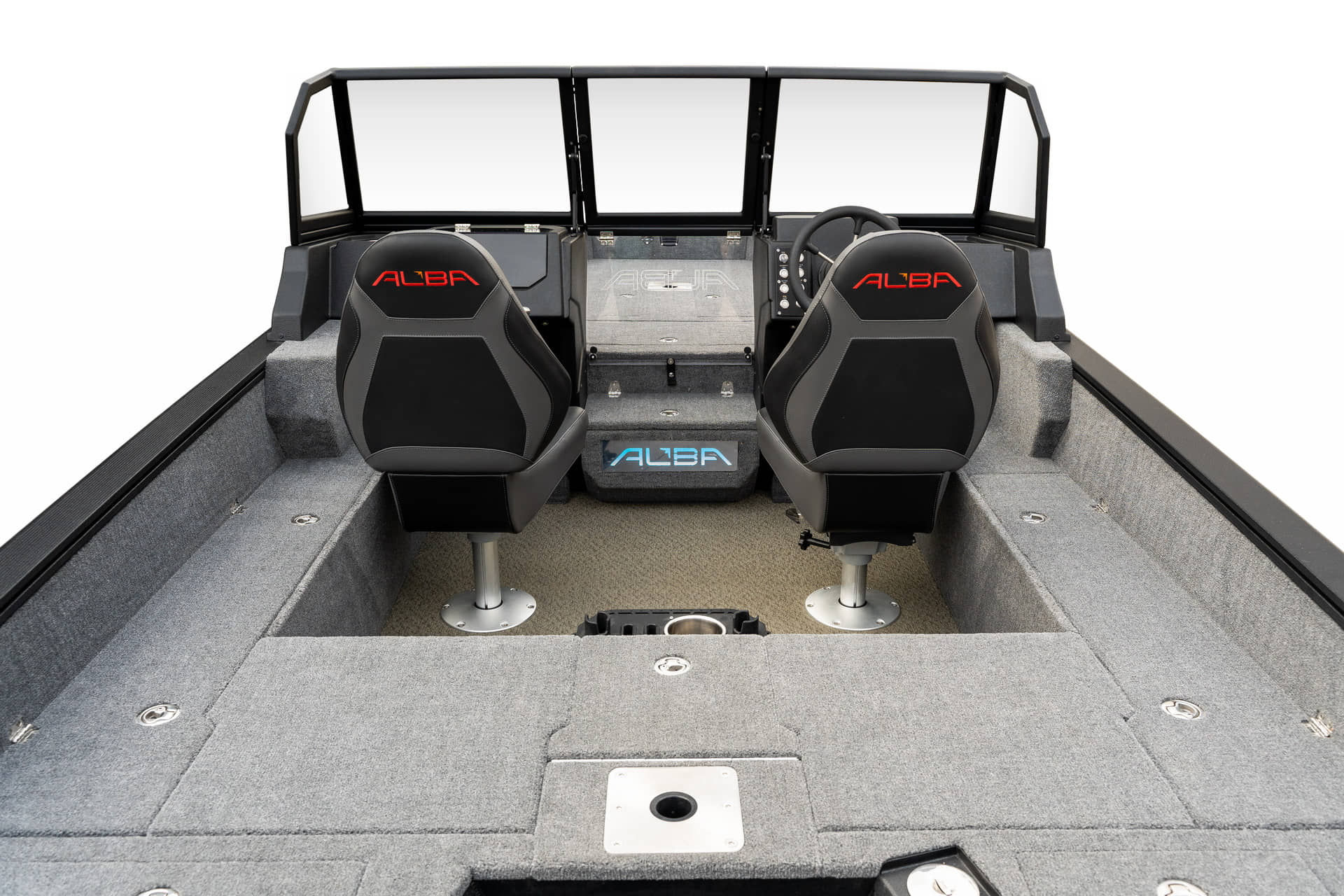 Celosvařené tělo Dvě konzole s kaleným sklem Lodní exteriérový koberec (rybářská paluba, zadní rybářská paluba a boční strany) Vinyl (rybářská paluba, úložný prostor, kokpit) Police na pravé a levé straně se skříňkami na udice až do délky 2,60 m Suché skříňky na přední palubě - 4 ks Skříňky v zadní části 2ks Skříňka mezi sedadly a skříňka na markýzu v kokpitu Skříňka mezi konzolami pro trakční baterie 65 l nádrž na ryby s okysličováním v zadní části 75 l palivová nádrž pro přívěsný motor s palivovým filtrem Ovládací panel s 8 tlačítky Dvě USB zásuvky - typu C na konzole řidiče a spolujezdce Navigační světla (zelená, červená) Příprava na montáž echolotů, elektromotoru, trakční baterie, vysokotlakého čističe Automatické odvodňovací čerpadlo Hlavní vypínač Nohy pro rybářské sedátko jsou ukryty v předních a zadních částech Sedadla řidiče a spolujezdce na odnímatelných držácích Zadní řada sedadel "Transformer" je zabudována do zadní paluby Čtyři kotvící rohatky vyrobené z nerezavějící oceli Sada zámků na skříňky z nerezavějící oceli Řízení s lanovody