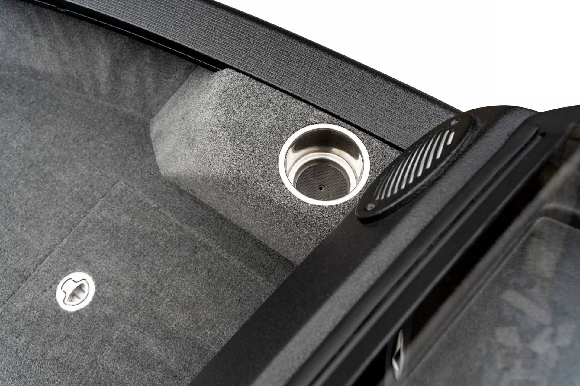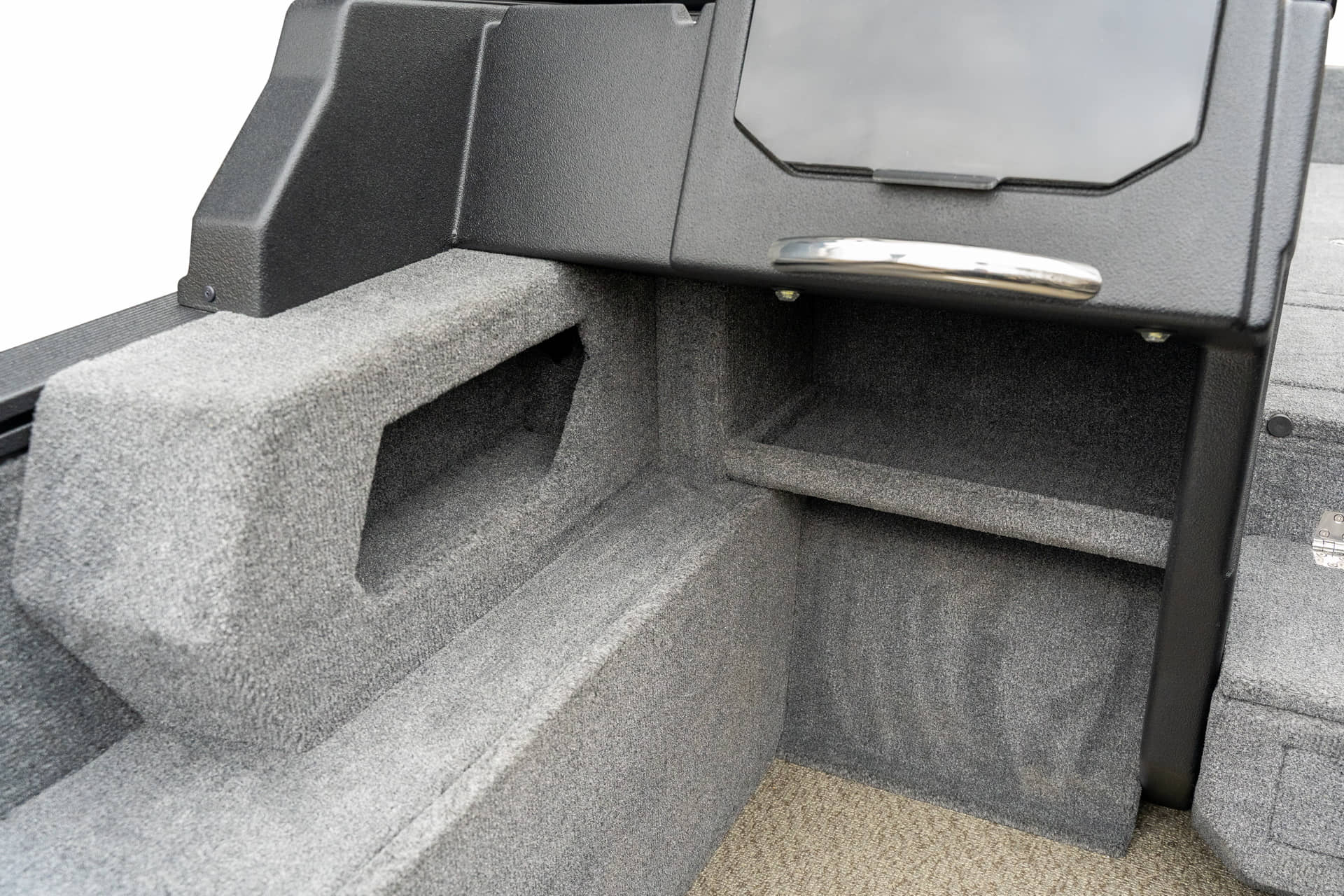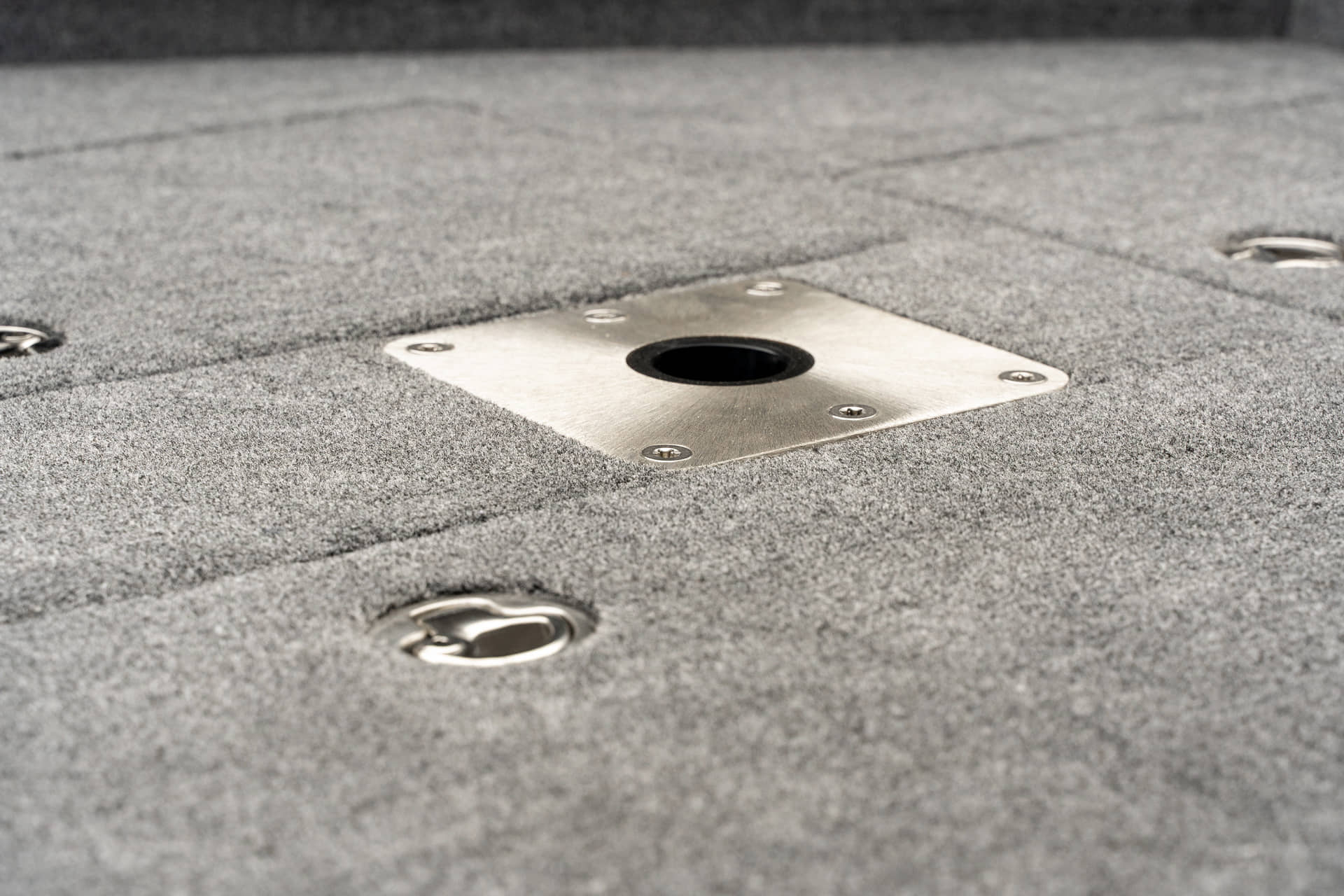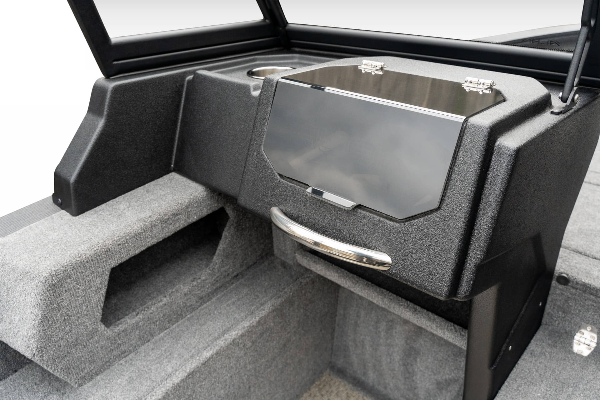 Celosvařené tělo Dvě konzole s kaleným sklem Lodní exteriérový koberec (rybářská paluba, zadní rybářská paluba a boční strany) Vinyl (rybářská paluba, úložný prostor, kokpit) Police na pravé a levé straně se skříňkami na udice až do délky 2,60 m Suché skříňky na přední palubě - 4 ks Skříňky v zadní části 2ks Skříňka mezi sedadly a skříňka na markýzu v kokpitu Skříňka mezi konzolami pro trakční baterie 65 l nádrž na ryby s okysličováním v zadní části 75 l palivová nádrž pro přívěsný motor s palivovým filtrem Ovládací panel s 8 tlačítky Dvě USB zásuvky - typu C na konzole řidiče a spolujezdce Navigační světla (zelená, červená) Příprava na montáž echolotů, elektromotoru, trakční baterie, vysokotlakého čističe Automatické odvodňovací čerpadlo Hlavní vypínač Nohy pro rybářské sedátko jsou ukryty v předních a zadních částech Sedadla řidiče a spolujezdce na odnímatelných držácích Zadní řada sedadel "Transformer" je zabudována do zadní paluby Čtyři kotvící rohatky vyrobené z nerezavějící oceli Sada zámků na skříňky z nerezavějící oceli Řízení s lanovody