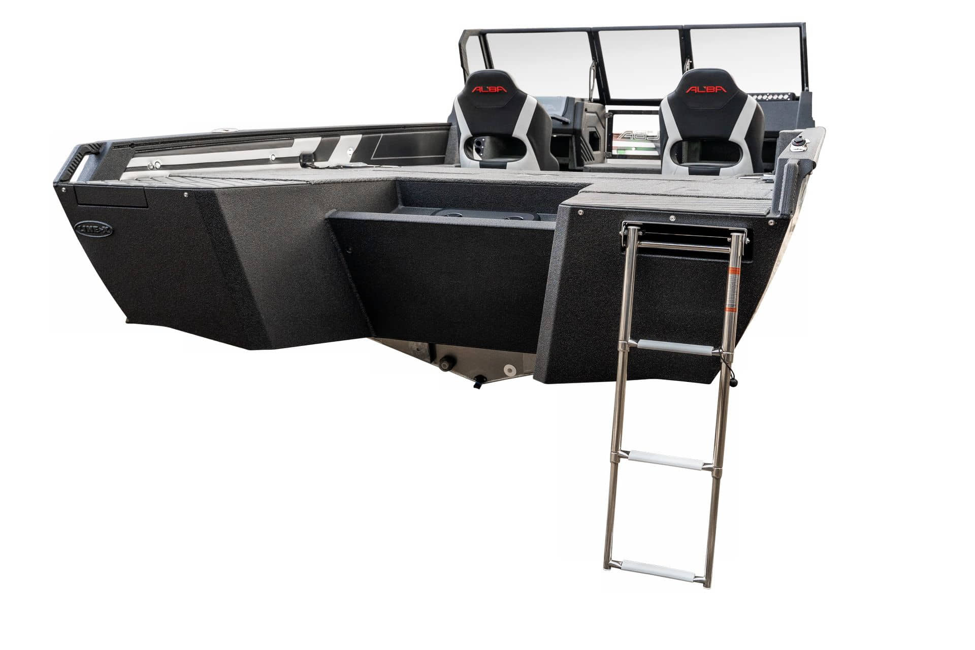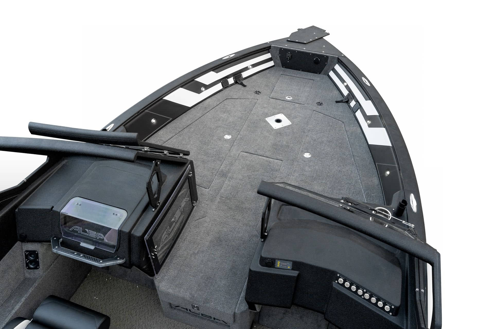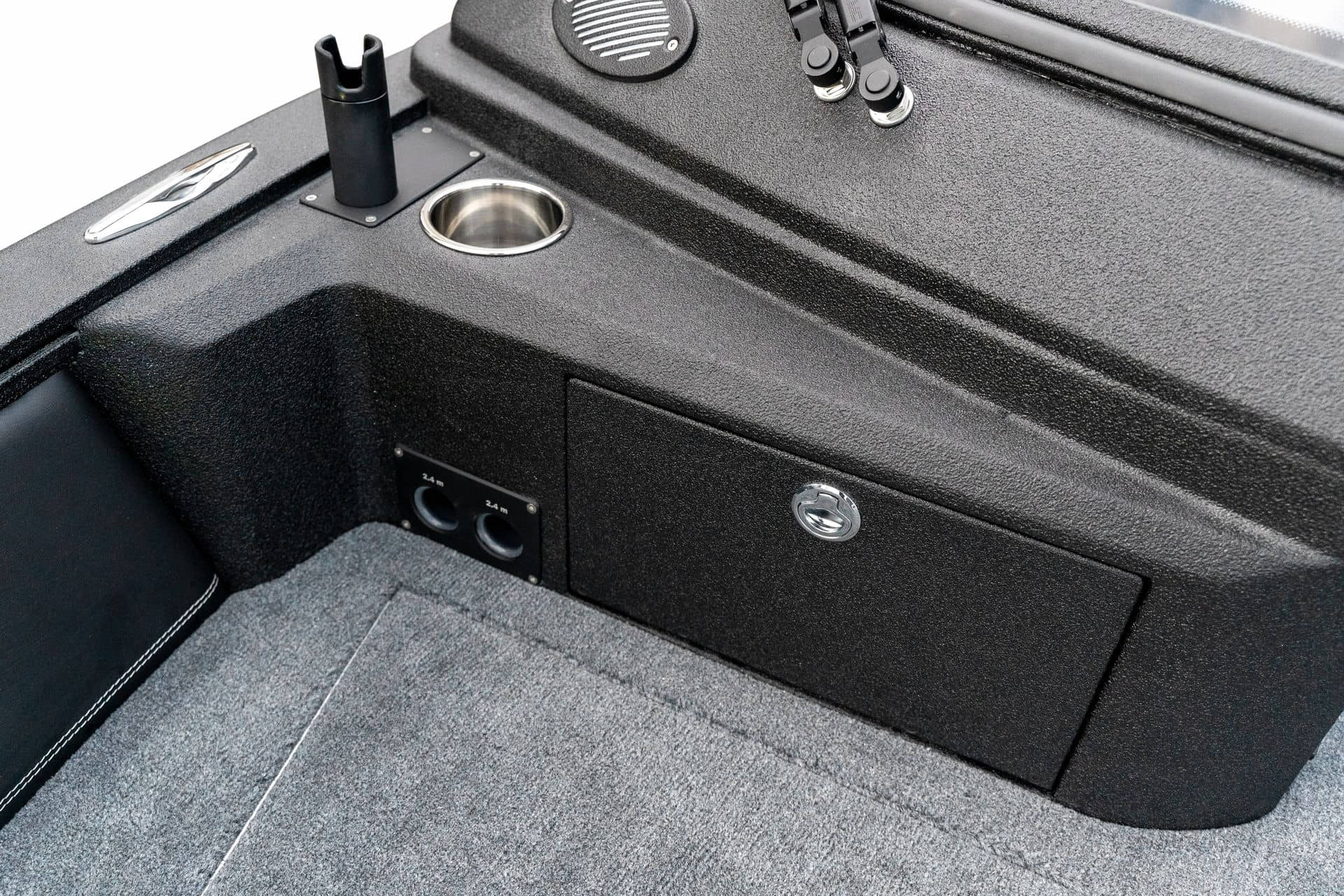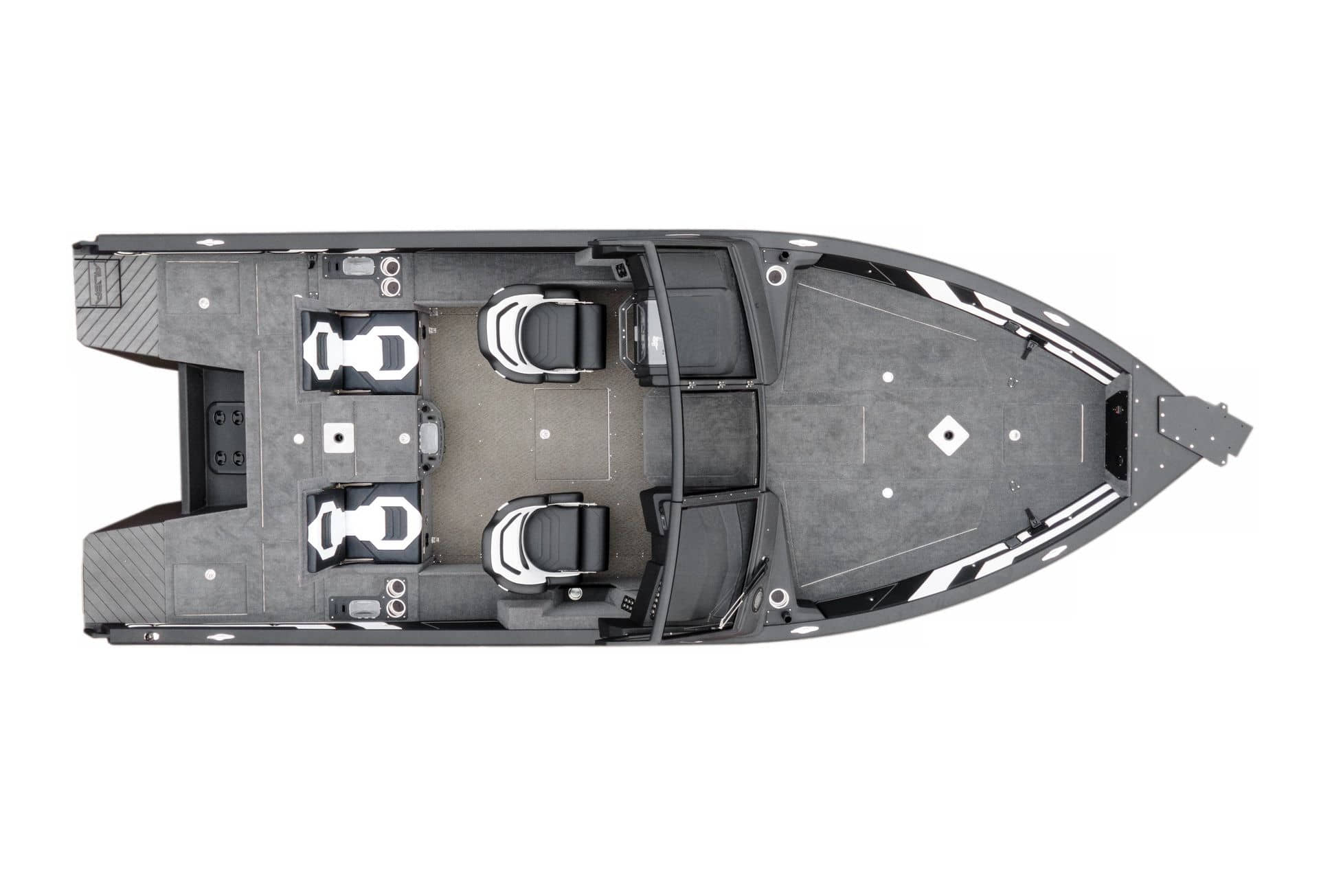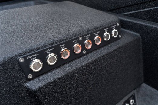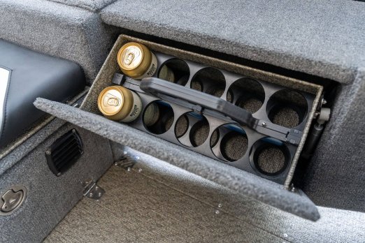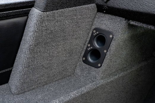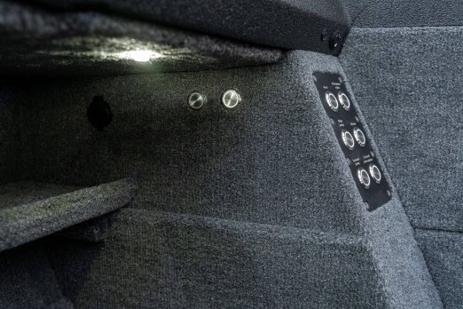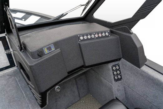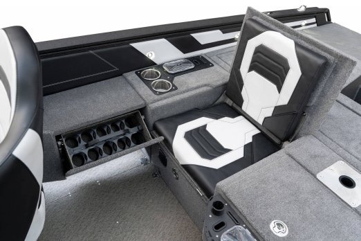 Celosvařené tělo Dvě konzole s kaleným sklem Lodní exteriérový koberec (rybářská paluba, zadní rybářská paluba a boční strany) Vinyl (kokpit) Suché boxy na věci a návnady s ventilačním a drenážním systémem Bateriový box v zadní části Úložný box na markýzu Boxy v konzolách pro uložení rybářského nářadí a osobních věcí Boční zásuvky v kokpitu 110 l nádrž na ryby v zadní části s okysličováním, osvětlením a časovačem recirkulace 227 l palivová nádrž pro přívěsný motor s palivovým filtrem Ovládací panel s 12 tlačítky Dvě USB zásuvky - typu C na konzole řidiče a spolujezdce Navigační světla (zelená, červená) LED osvětlení pro skříňky, kokpit, konzoly, paluby na přídi a zádi Nerezová rukojeť spolujezdce LED osvětlení ve skleněném rámu Zarážky pod sklo s frézovanými hliníkovými úchyty Ozdobné frézované hliníkové prolisy na bočním skle Příprava na instalaci echolotů, elektromotoru, hydraulického posilovacího čerpadla, autonomního ohřívače, vyhřívaných sedadel, vysokotlakého čističe Automatické odvodňovací čerpadlo Hlavní vypínač Nohy pro rybářské sedátko jsou ukryty v předních a zadních částech Sedadla řidiče a spolujezdce na tlumičích Zadní řada sedadel "Transformátor" na zadní palubě s individuálními organizéry pro cestující Šest výsuvných rohatek vyrobených z nerezavějící oceli Sada zámků na skříňky z nerezavějící oceli Teleskopický žebřík v pravé části Organizér mezi sedadly zadní řady Organizér pro kormidelníka Volant Krycí plachta