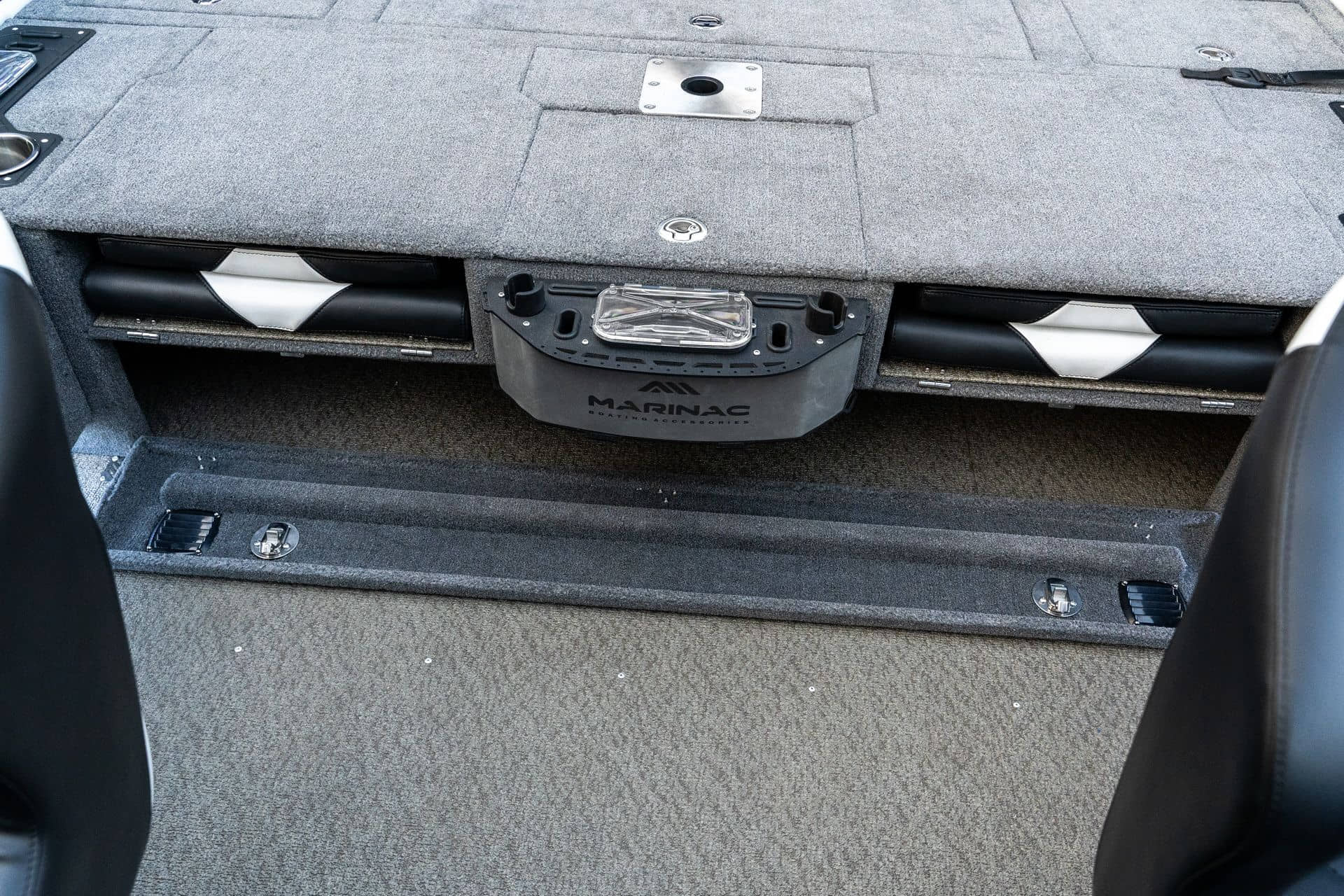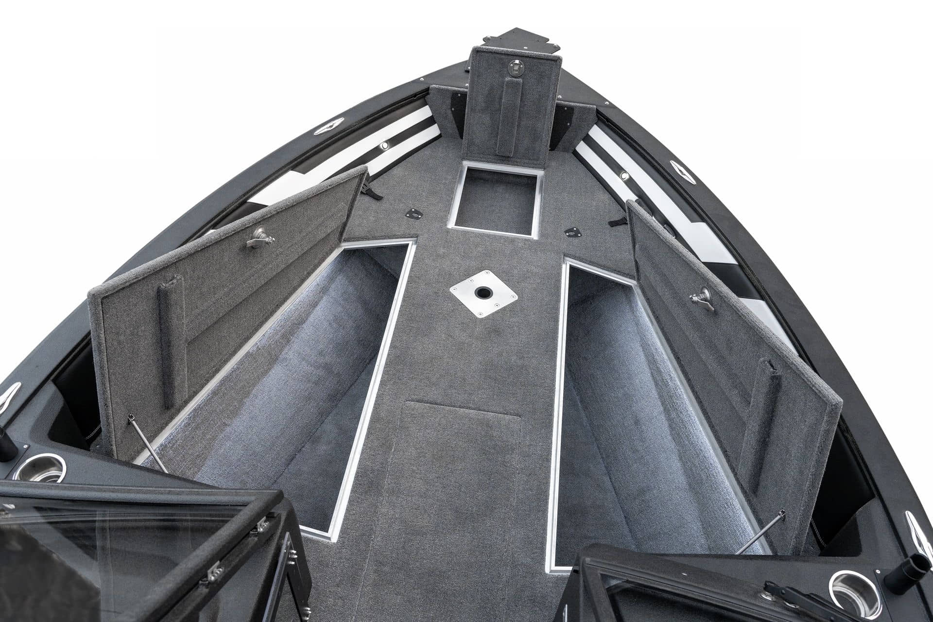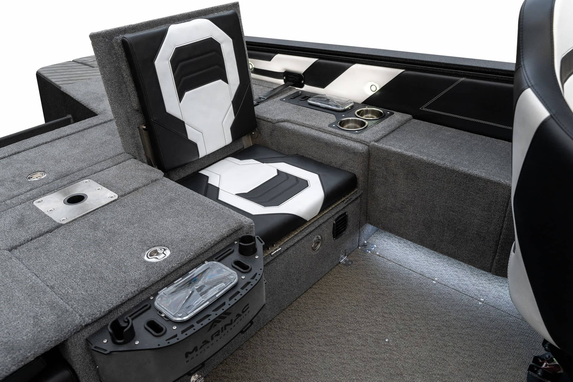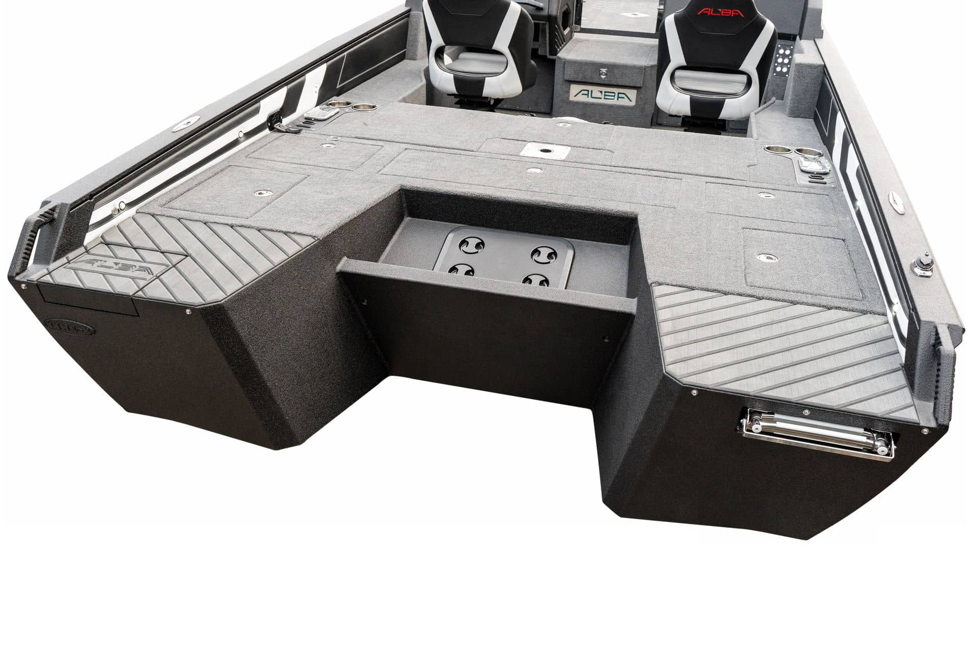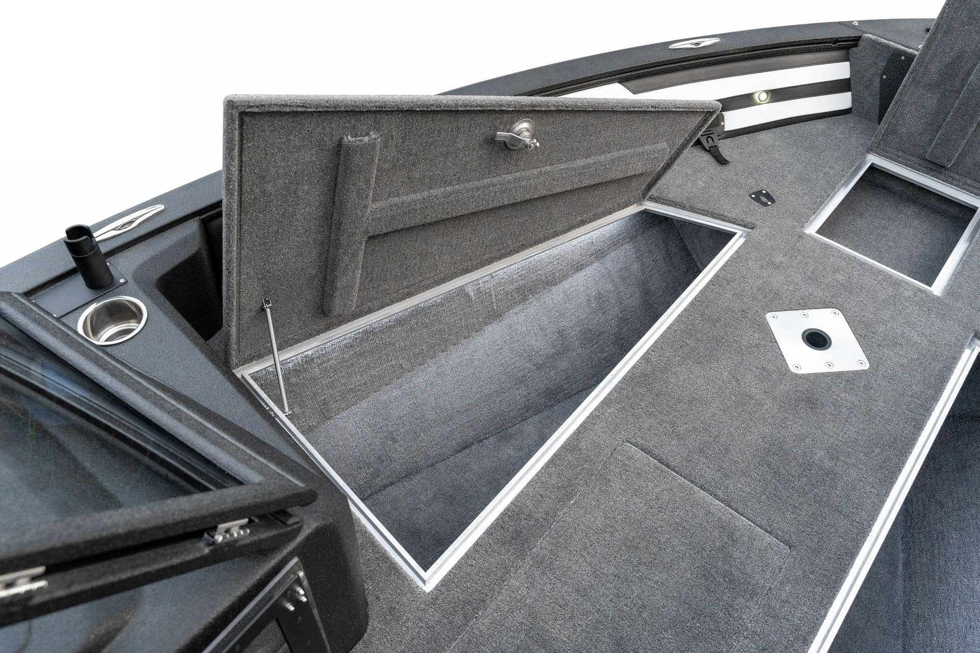 Celosvařené tělo Dvě konzole s kaleným sklem Lodní exteriérový koberec (rybářská paluba, zadní rybářská paluba a boční strany) Vinyl (kokpit) Suché boxy na věci a návnady s ventilačním a drenážním systémem Bateriový box v zadní části Úložný box na markýzu Boxy v konzolách pro uložení rybářského nářadí a osobních věcí Boční zásuvky v kokpitu 110 l nádrž na ryby v zadní části s okysličováním, osvětlením a časovačem recirkulace 227 l palivová nádrž pro přívěsný motor s palivovým filtrem Ovládací panel s 12 tlačítky Dvě USB zásuvky - typu C na konzole řidiče a spolujezdce Navigační světla (zelená, červená) LED osvětlení pro skříňky, kokpit, konzoly, paluby na přídi a zádi Nerezová rukojeť spolujezdce LED osvětlení ve skleněném rámu Zarážky pod sklo s frézovanými hliníkovými úchyty Ozdobné frézované hliníkové prolisy na bočním skle Příprava na instalaci echolotů, elektromotoru, hydraulického posilovacího čerpadla, autonomního ohřívače, vyhřívaných sedadel, vysokotlakého čističe Automatické odvodňovací čerpadlo Hlavní vypínač Nohy pro rybářské sedátko jsou ukryty v předních a zadních částech Sedadla řidiče a spolujezdce na tlumičích Zadní řada sedadel "Transformátor" na zadní palubě s individuálními organizéry pro cestující Šest výsuvných rohatek vyrobených z nerezavějící oceli Sada zámků na skříňky z nerezavějící oceli Teleskopický žebřík v pravé části Organizér mezi sedadly zadní řady Organizér pro kormidelníka Volant Krycí plachta