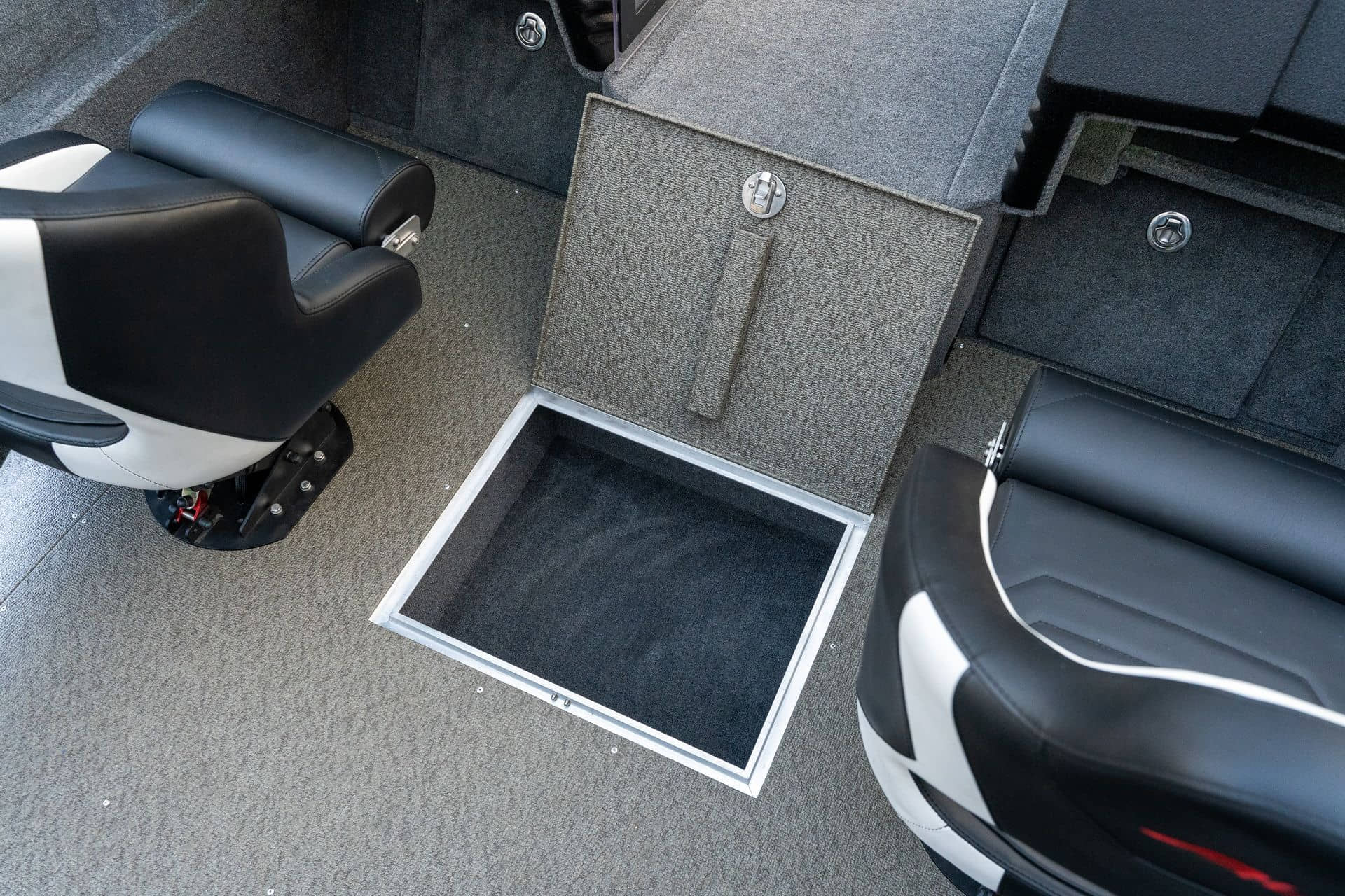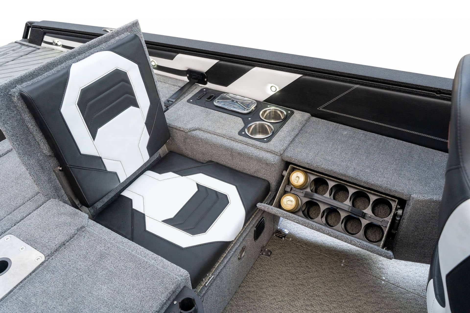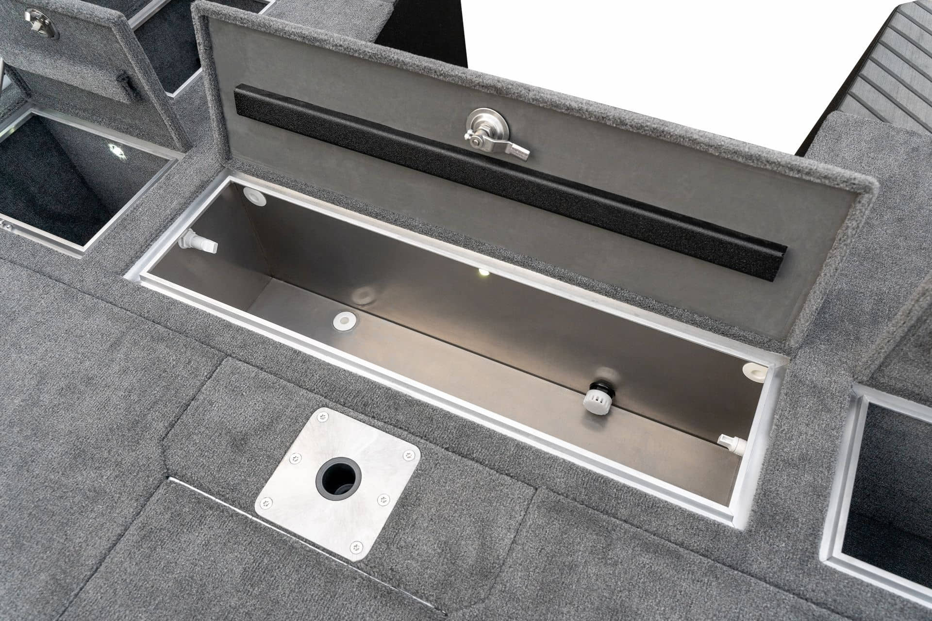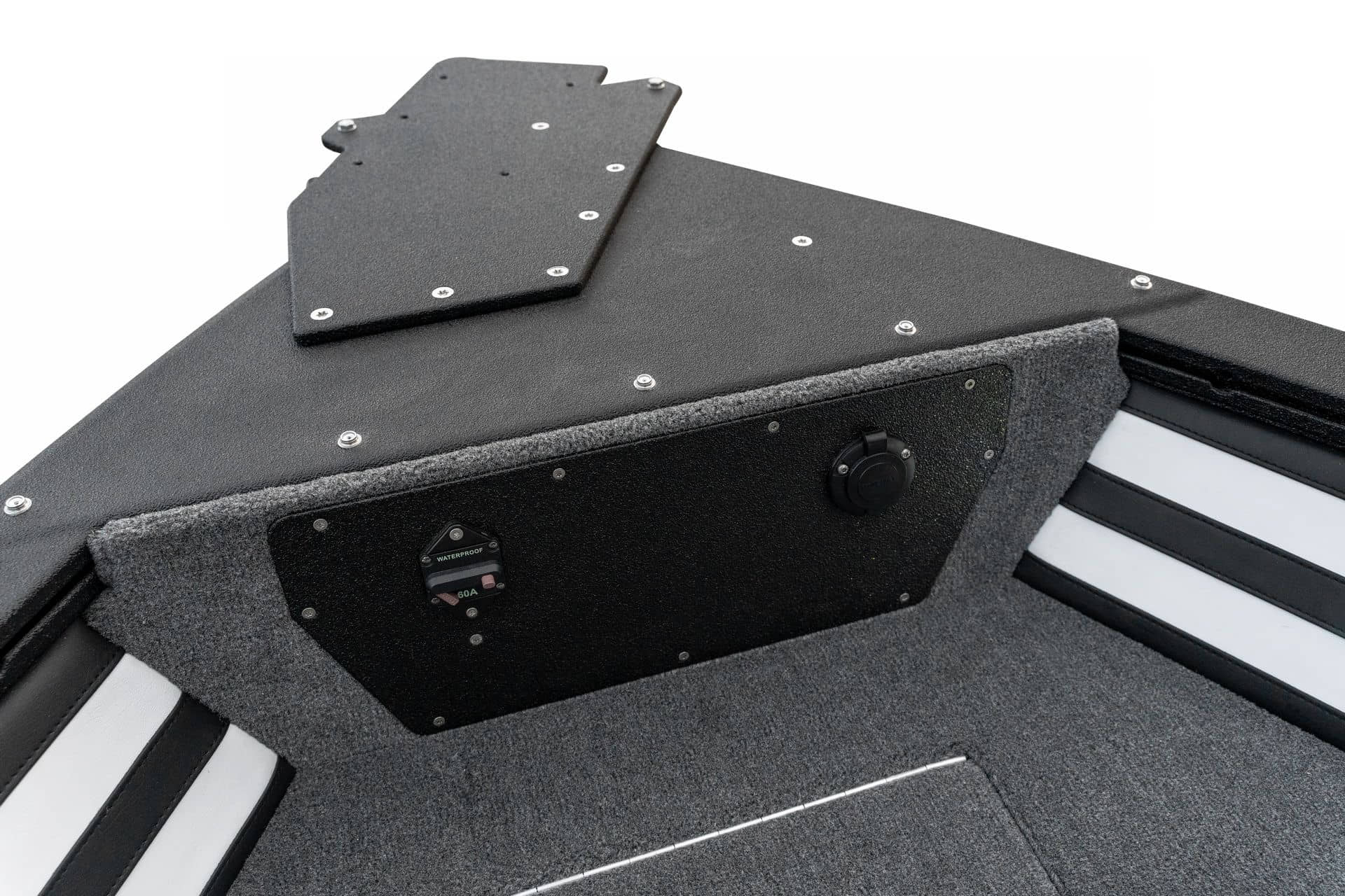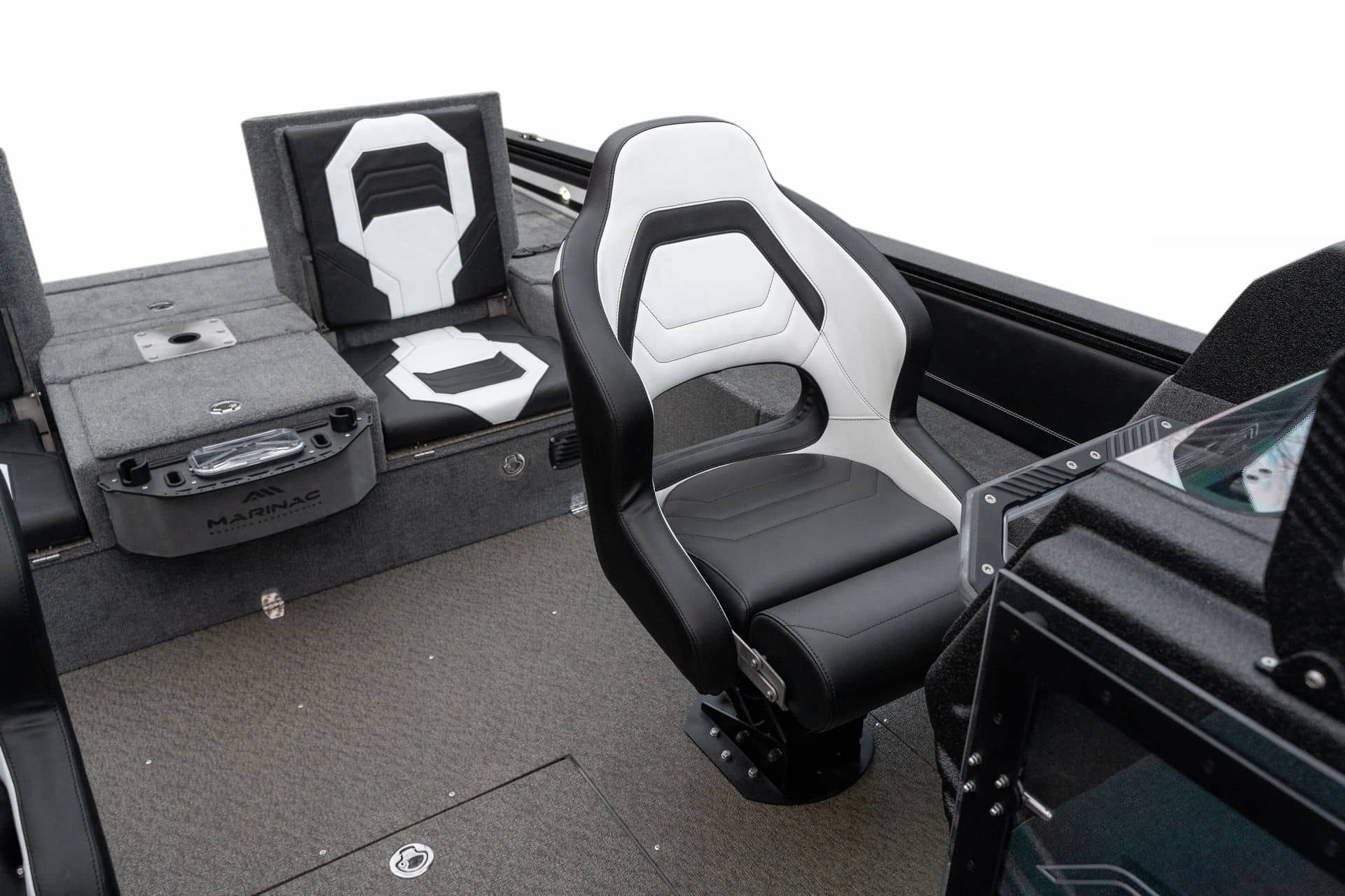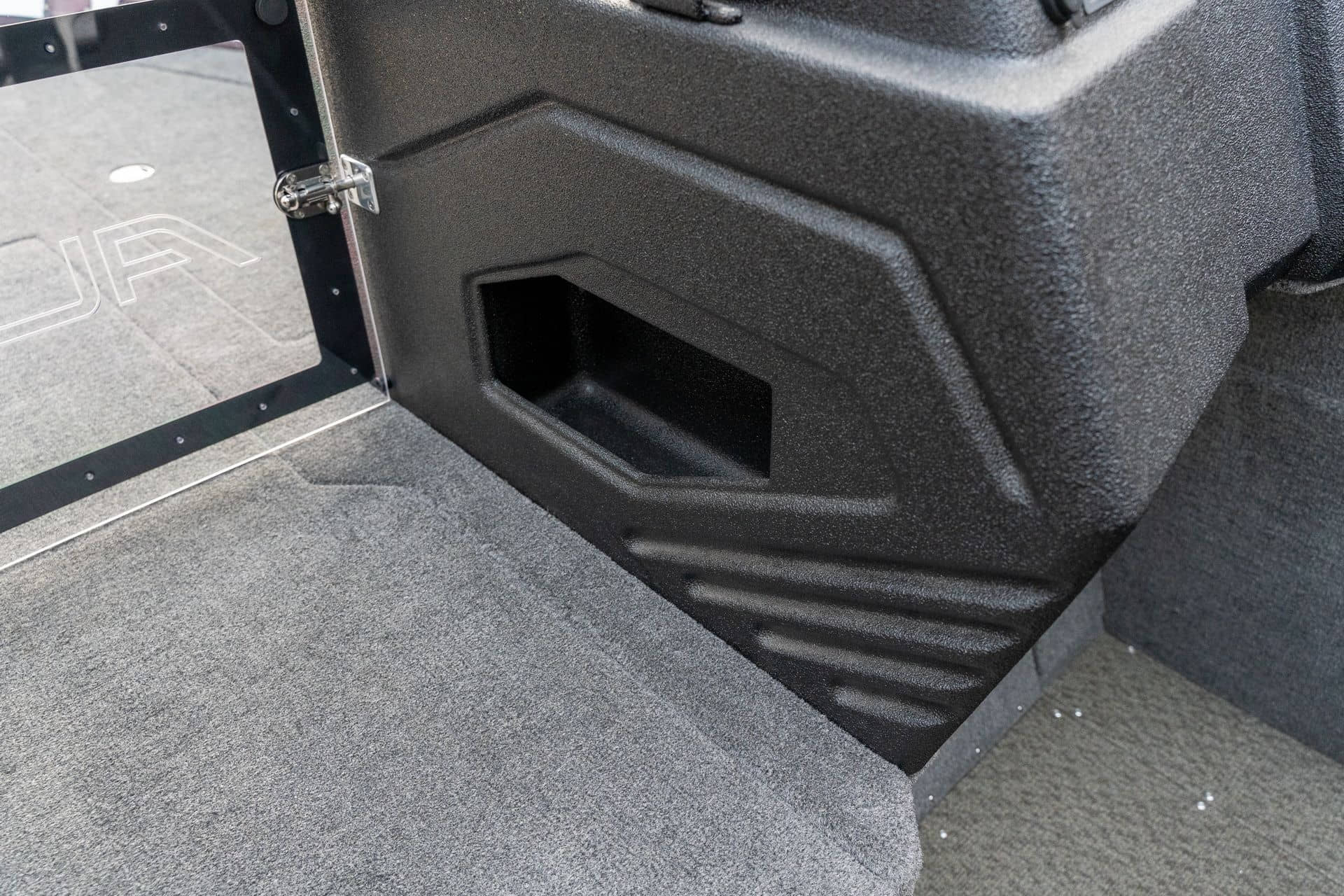 Celosvařené tělo Dvě konzole s kaleným sklem Lodní exteriérový koberec (rybářská paluba, zadní rybářská paluba a boční strany) Vinyl (kokpit) Suché boxy na věci a návnady s ventilačním a drenážním systémem Bateriový box v zadní části Úložný box na markýzu Boxy v konzolách pro uložení rybářského nářadí a osobních věcí Boční zásuvky v kokpitu 110 l nádrž na ryby v zadní části s okysličováním, osvětlením a časovačem recirkulace 227 l palivová nádrž pro přívěsný motor s palivovým filtrem Ovládací panel s 12 tlačítky Dvě USB zásuvky - typu C na konzole řidiče a spolujezdce Navigační světla (zelená, červená) LED osvětlení pro skříňky, kokpit, konzoly, paluby na přídi a zádi Nerezová rukojeť spolujezdce LED osvětlení ve skleněném rámu Zarážky pod sklo s frézovanými hliníkovými úchyty Ozdobné frézované hliníkové prolisy na bočním skle Příprava na instalaci echolotů, elektromotoru, hydraulického posilovacího čerpadla, autonomního ohřívače, vyhřívaných sedadel, vysokotlakého čističe Automatické odvodňovací čerpadlo Hlavní vypínač Nohy pro rybářské sedátko jsou ukryty v předních a zadních částech Sedadla řidiče a spolujezdce na tlumičích Zadní řada sedadel "Transformátor" na zadní palubě s individuálními organizéry pro cestující Šest výsuvných rohatek vyrobených z nerezavějící oceli Sada zámků na skříňky z nerezavějící oceli Teleskopický žebřík v pravé části Organizér mezi sedadly zadní řady Organizér pro kormidelníka Volant Krycí plachta