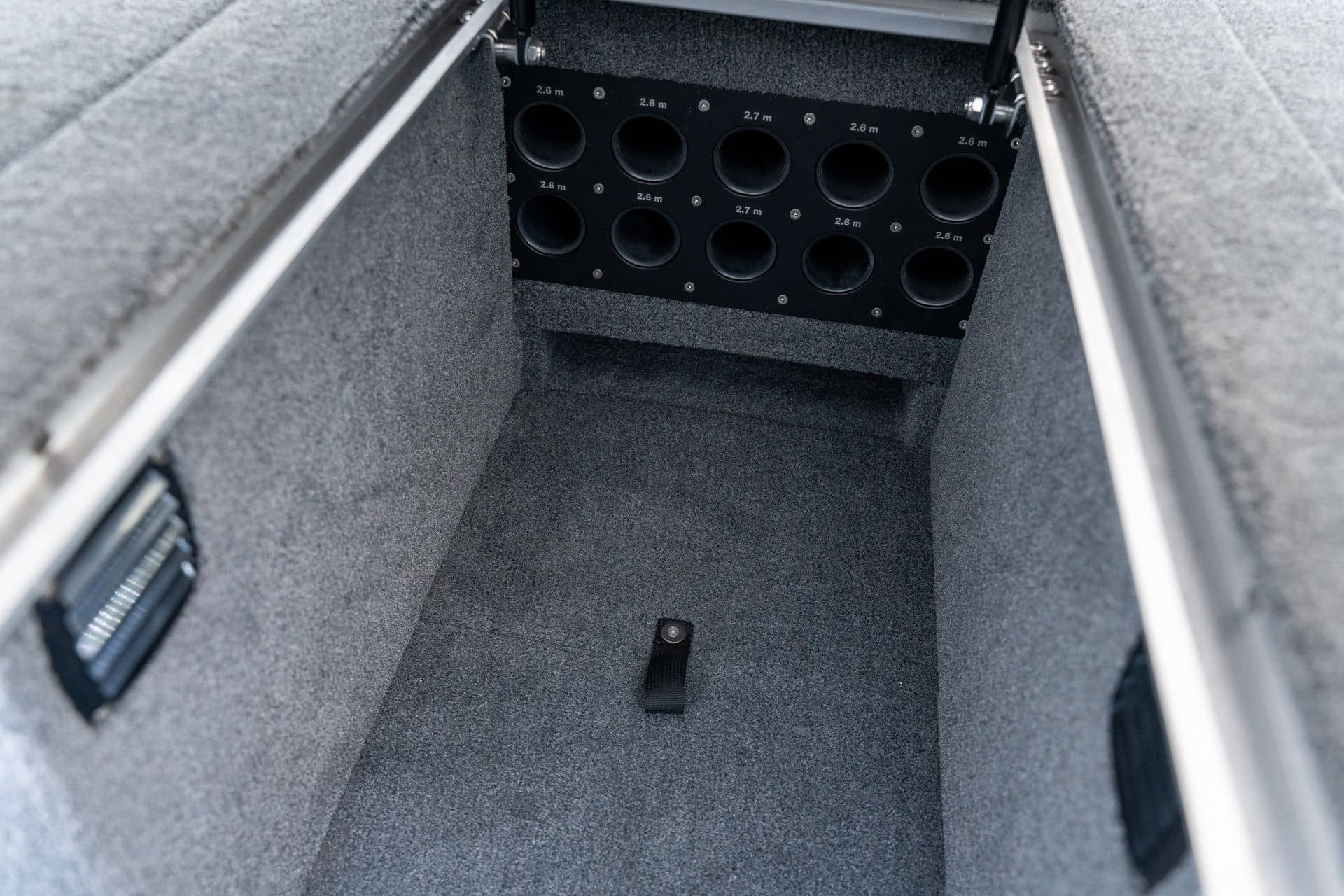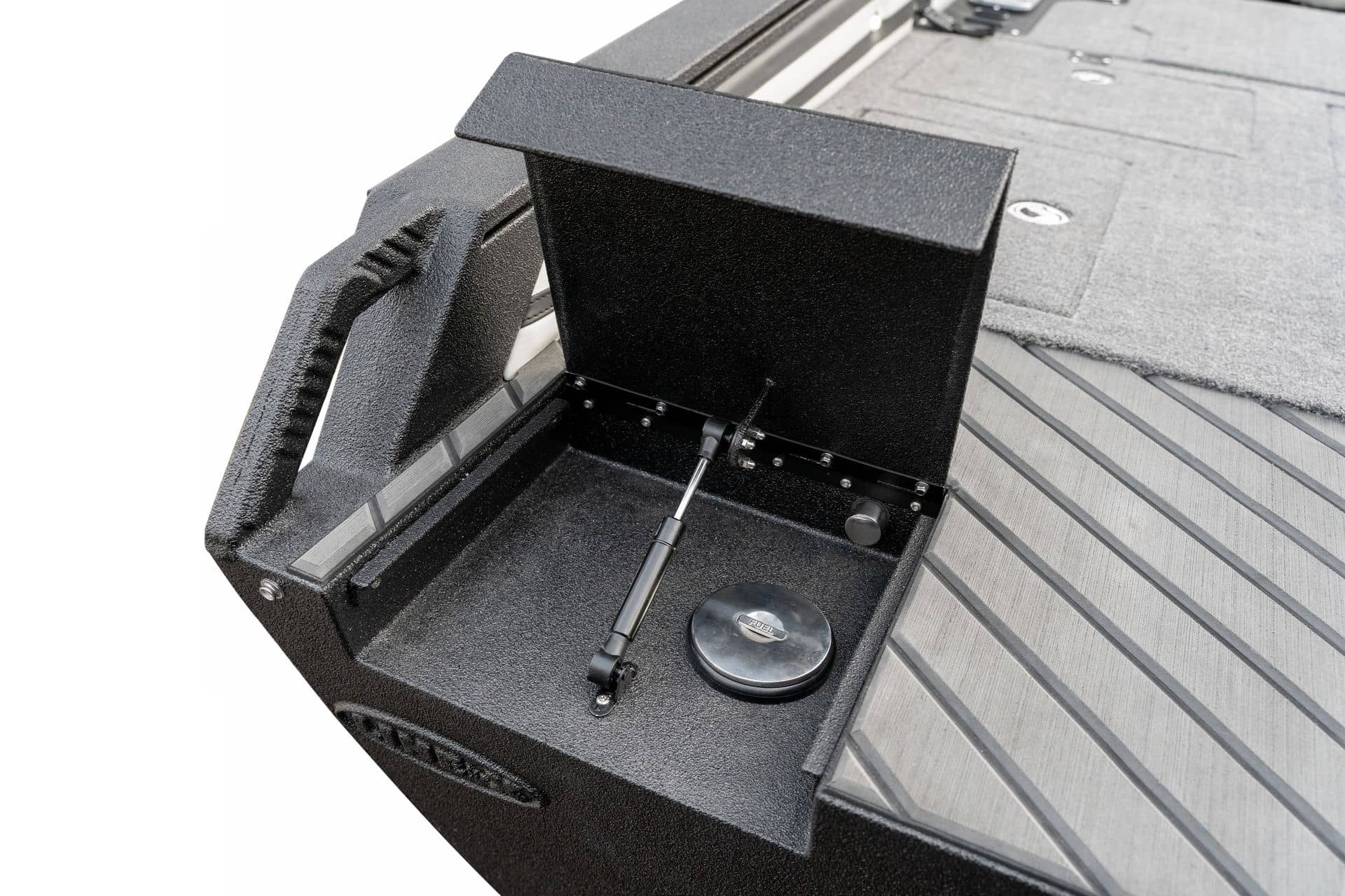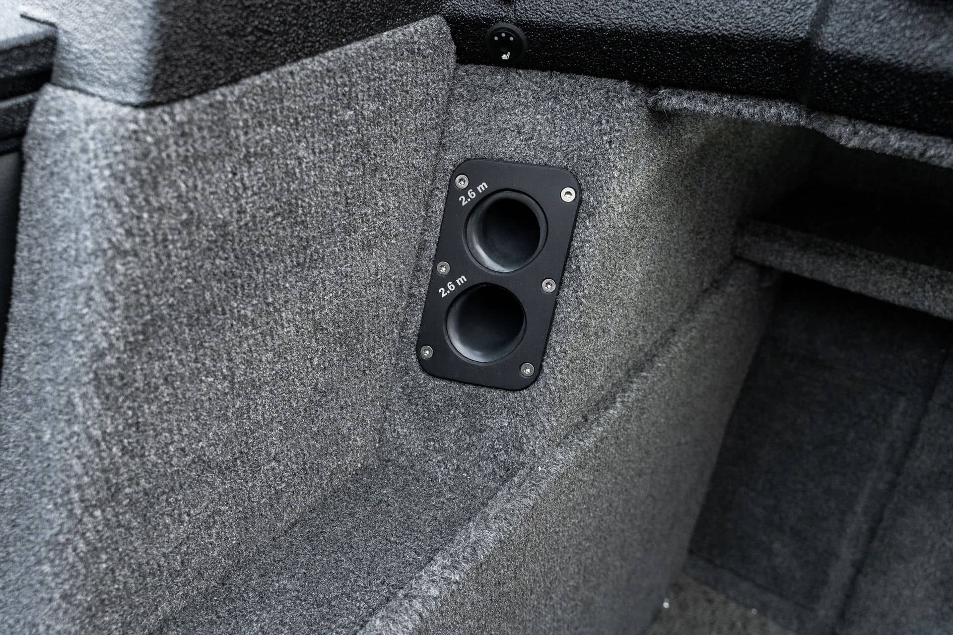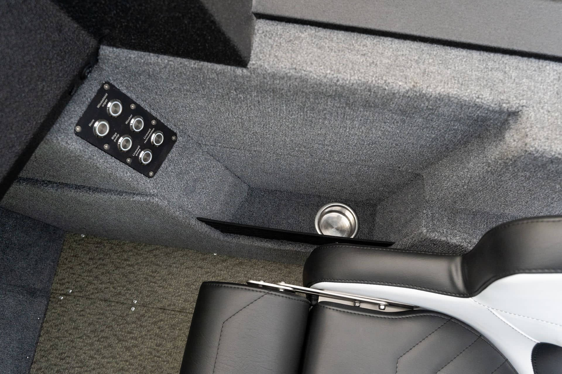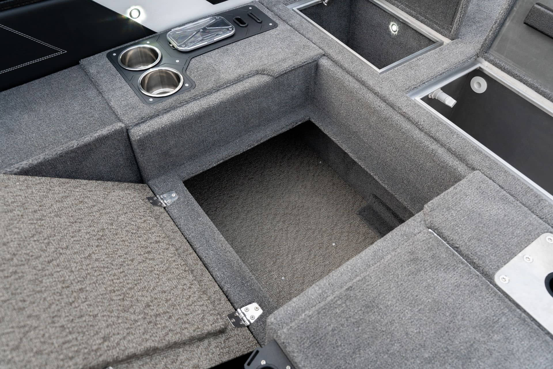 Celosvařené tělo Dvě konzole s kaleným sklem Lodní exteriérový koberec (rybářská paluba, zadní rybářská paluba a boční strany) Vinyl (kokpit) Suché boxy na věci a návnady s ventilačním a drenážním systémem Bateriový box v zadní části Úložný box na markýzu Boxy v konzolách pro uložení rybářského nářadí a osobních věcí Boční zásuvky v kokpitu 110 l nádrž na ryby v zadní části s okysličováním, osvětlením a časovačem recirkulace 227 l palivová nádrž pro přívěsný motor s palivovým filtrem Ovládací panel s 12 tlačítky Dvě USB zásuvky - typu C na konzole řidiče a spolujezdce Navigační světla (zelená, červená) LED osvětlení pro skříňky, kokpit, konzoly, paluby na přídi a zádi Nerezová rukojeť spolujezdce LED osvětlení ve skleněném rámu Zarážky pod sklo s frézovanými hliníkovými úchyty Ozdobné frézované hliníkové prolisy na bočním skle Příprava na instalaci echolotů, elektromotoru, hydraulického posilovacího čerpadla, autonomního ohřívače, vyhřívaných sedadel, vysokotlakého čističe Automatické odvodňovací čerpadlo Hlavní vypínač Nohy pro rybářské sedátko jsou ukryty v předních a zadních částech Sedadla řidiče a spolujezdce na tlumičích Zadní řada sedadel "Transformátor" na zadní palubě s individuálními organizéry pro cestující Šest výsuvných rohatek vyrobených z nerezavějící oceli Sada zámků na skříňky z nerezavějící oceli Teleskopický žebřík v pravé části Organizér mezi sedadly zadní řady Organizér pro kormidelníka Volant Krycí plachta