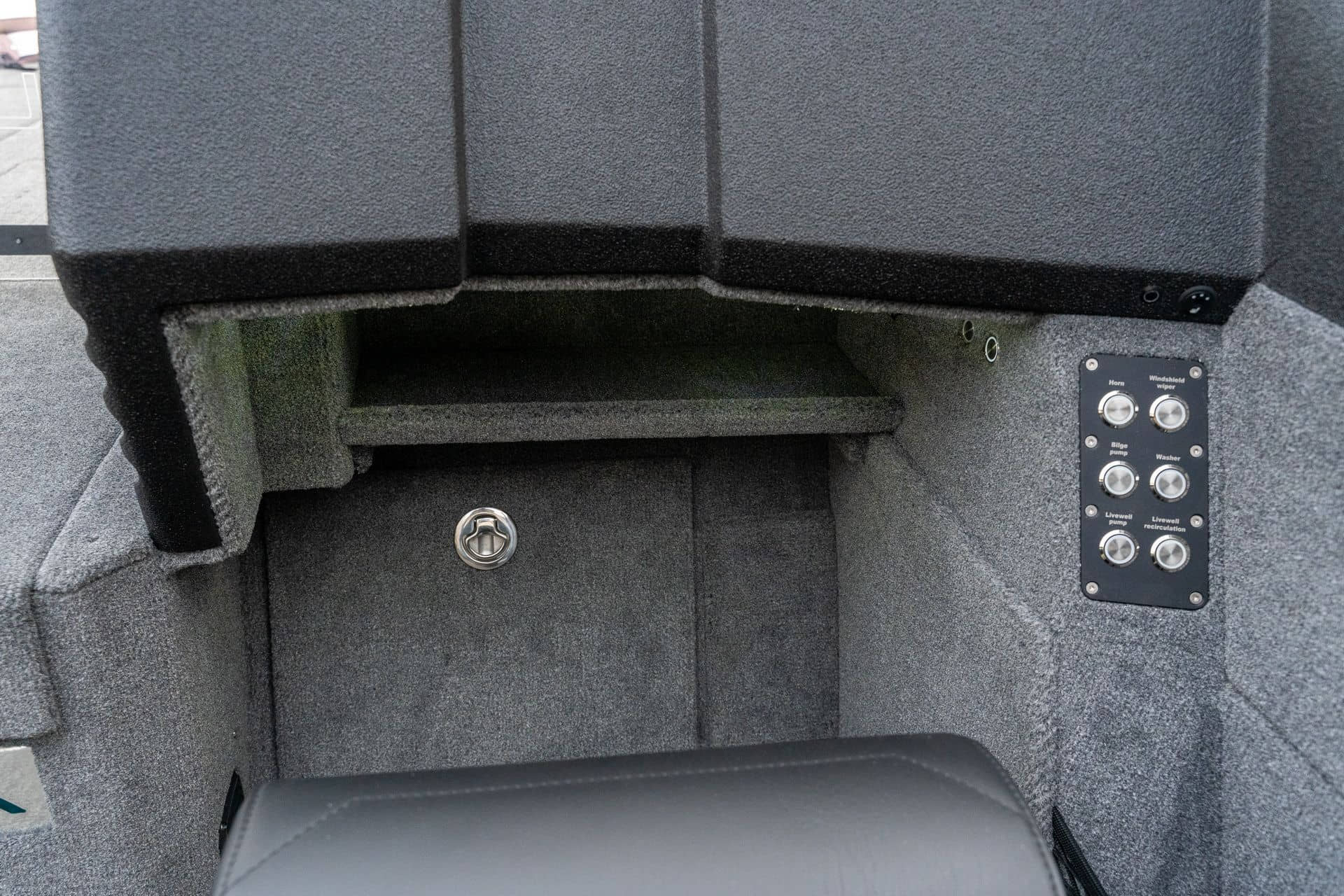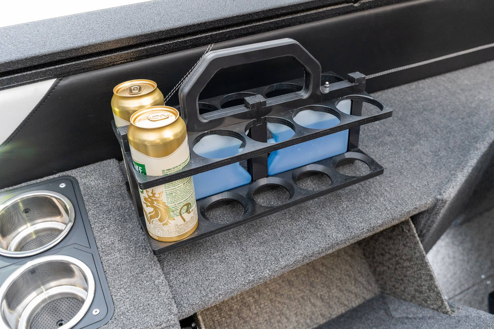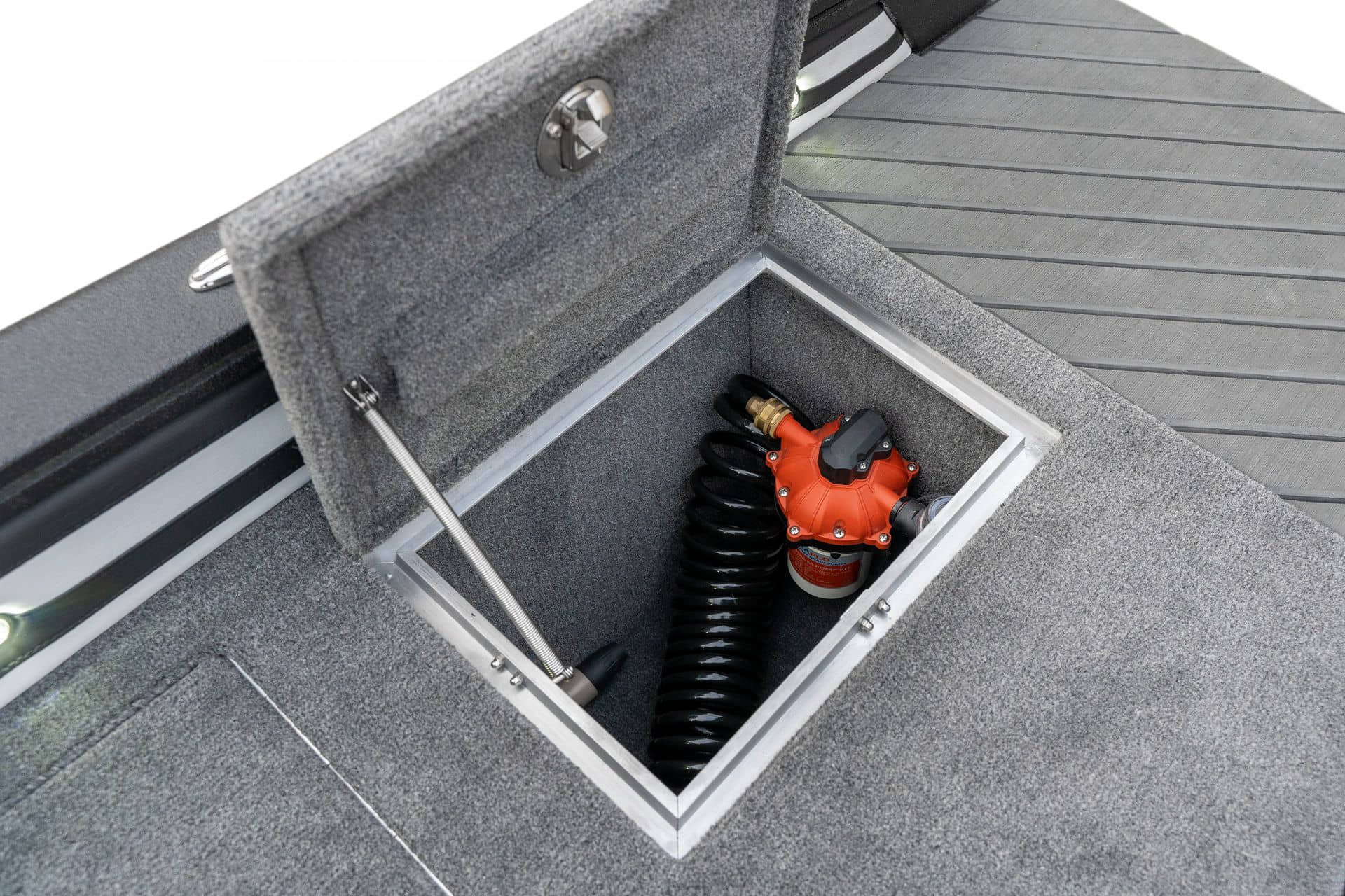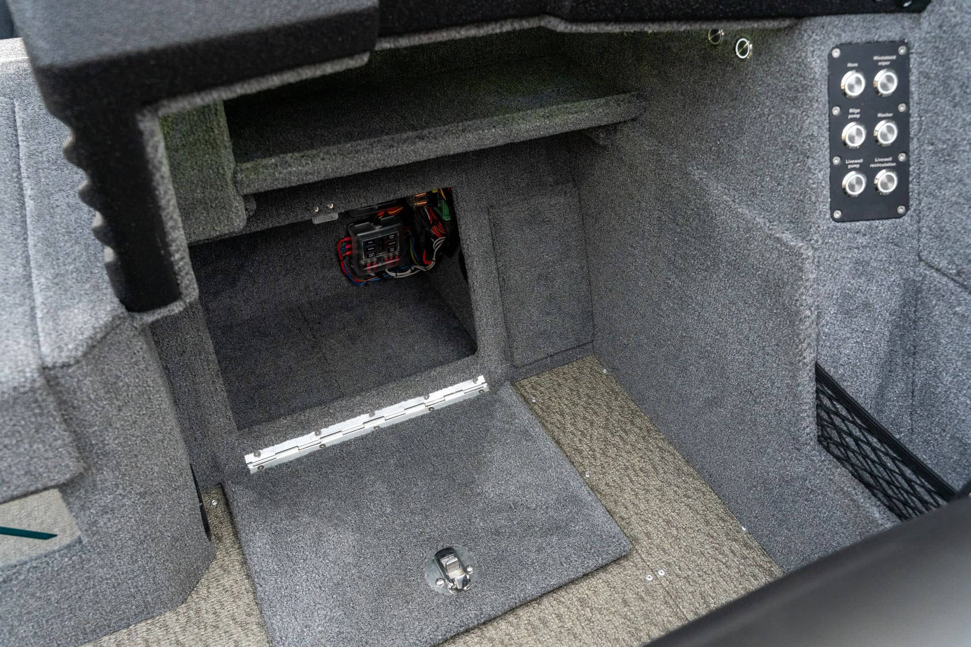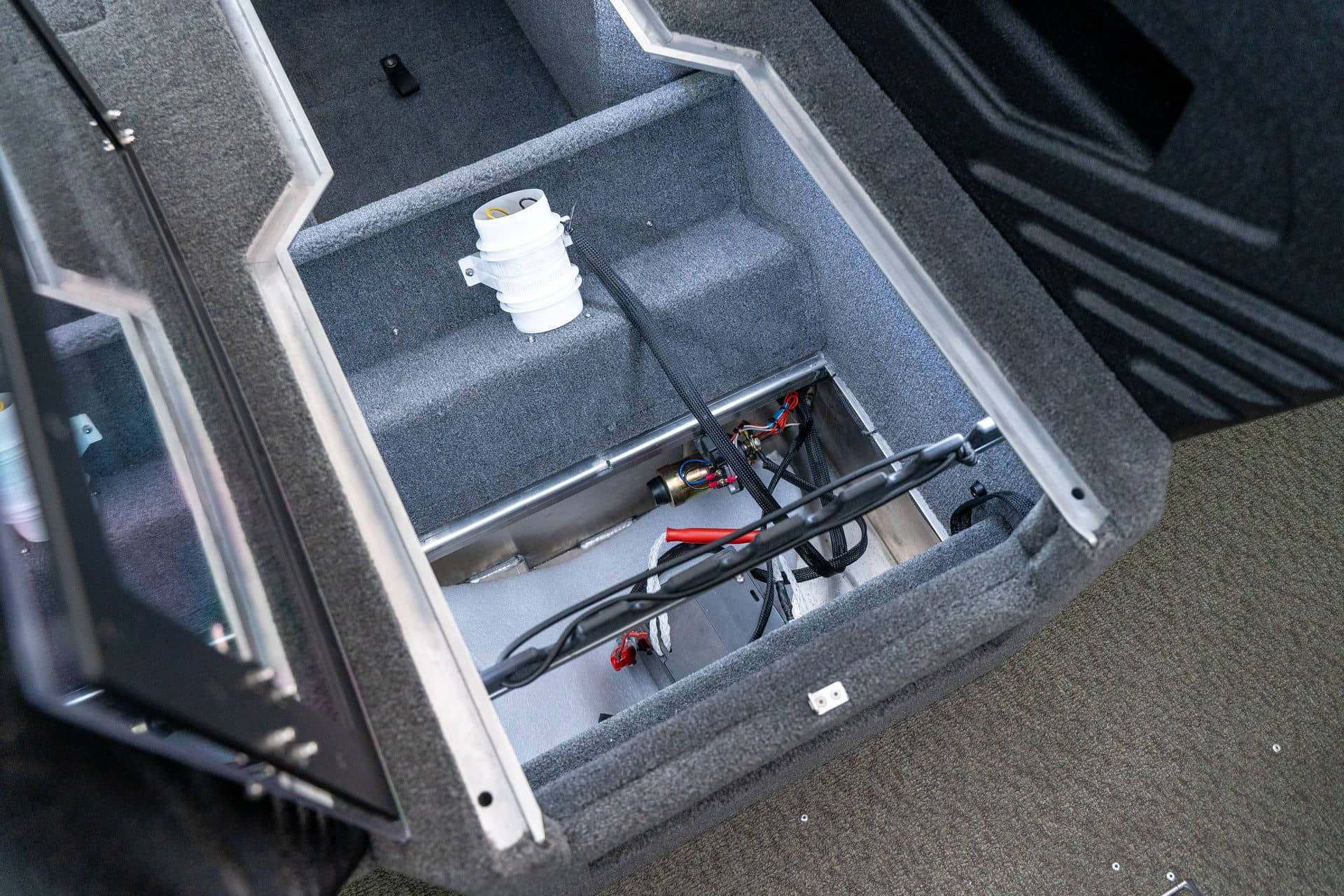 Celosvařené tělo Dvě konzole s kaleným sklem Lodní exteriérový koberec (rybářská paluba, zadní rybářská paluba a boční strany) Vinyl (kokpit) Suché boxy na věci a návnady s ventilačním a drenážním systémem Bateriový box v zadní části Úložný box na markýzu Boxy v konzolách pro uložení rybářského nářadí a osobních věcí Boční zásuvky v kokpitu 110 l nádrž na ryby v zadní části s okysličováním, osvětlením a časovačem recirkulace 227 l palivová nádrž pro přívěsný motor s palivovým filtrem Ovládací panel s 12 tlačítky Dvě USB zásuvky - typu C na konzole řidiče a spolujezdce Navigační světla (zelená, červená) LED osvětlení pro skříňky, kokpit, konzoly, paluby na přídi a zádi Nerezová rukojeť spolujezdce LED osvětlení ve skleněném rámu Zarážky pod sklo s frézovanými hliníkovými úchyty Ozdobné frézované hliníkové prolisy na bočním skle Příprava na instalaci echolotů, elektromotoru, hydraulického posilovacího čerpadla, autonomního ohřívače, vyhřívaných sedadel, vysokotlakého čističe Automatické odvodňovací čerpadlo Hlavní vypínač Nohy pro rybářské sedátko jsou ukryty v předních a zadních částech Sedadla řidiče a spolujezdce na tlumičích Zadní řada sedadel "Transformátor" na zadní palubě s individuálními organizéry pro cestující Šest výsuvných rohatek vyrobených z nerezavějící oceli Sada zámků na skříňky z nerezavějící oceli Teleskopický žebřík v pravé části Organizér mezi sedadly zadní řady Organizér pro kormidelníka Volant Krycí plachta